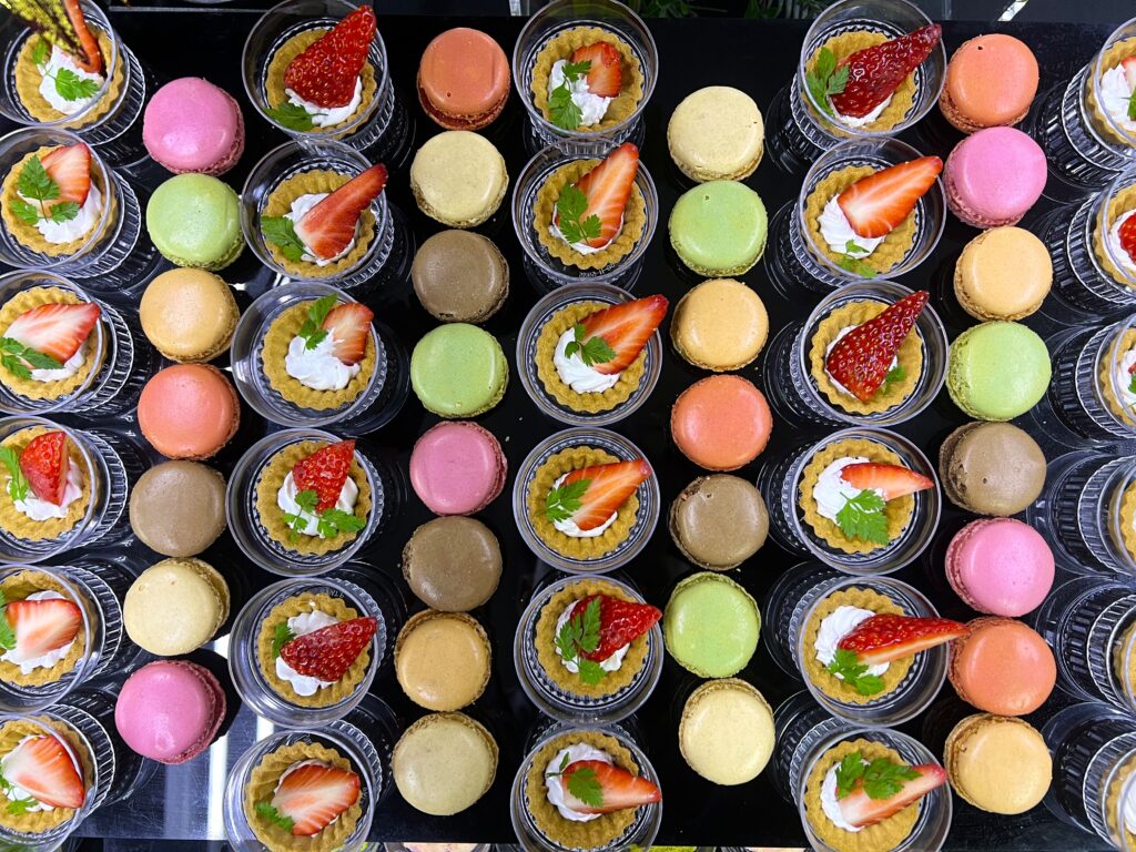 マカロンやミニケーキを個包装で提供することで、衛生面や配膳の負担も軽減されます。さらに、パッケージに企業ロゴやメッセージを入れることで、参加者が持ち帰った後もブランド認知を高められるメリットがあります。Mr.BUFFETでは、個包装スイーツのロゴ対応も可能で、イベントの細部まで統一感を出す提案が可能です。